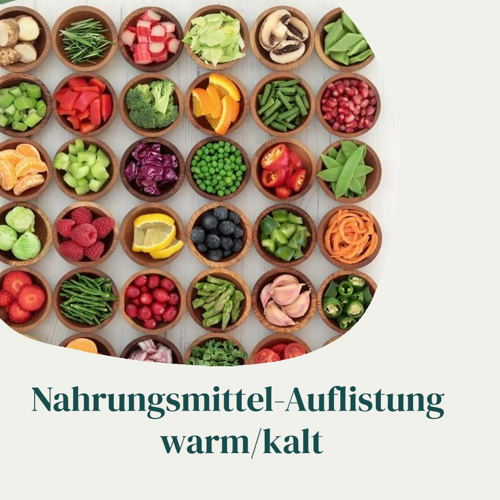 Kurze nicht-vollständige und dennoch aufschlussreiche Liste, welche Nahrungsmittel warm oder kalt, feucht oder trocken sind. Eine kurze und knackige Übersicht, welche gängigen Nahrungsmittel und Kräuter humoralmedizinisch als wärmend oder kühlend bezeichnet werden. Nimm diese Liste als Hilfestellung in Bezug: mehr warm und gekocht und weniger kalt und kühl essen. E Guete!